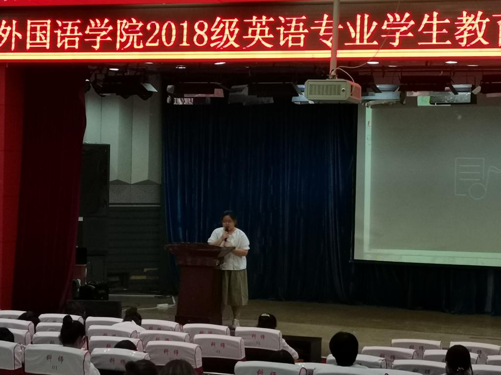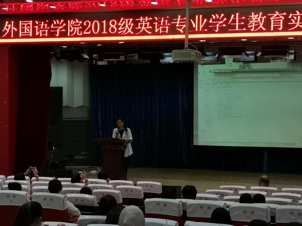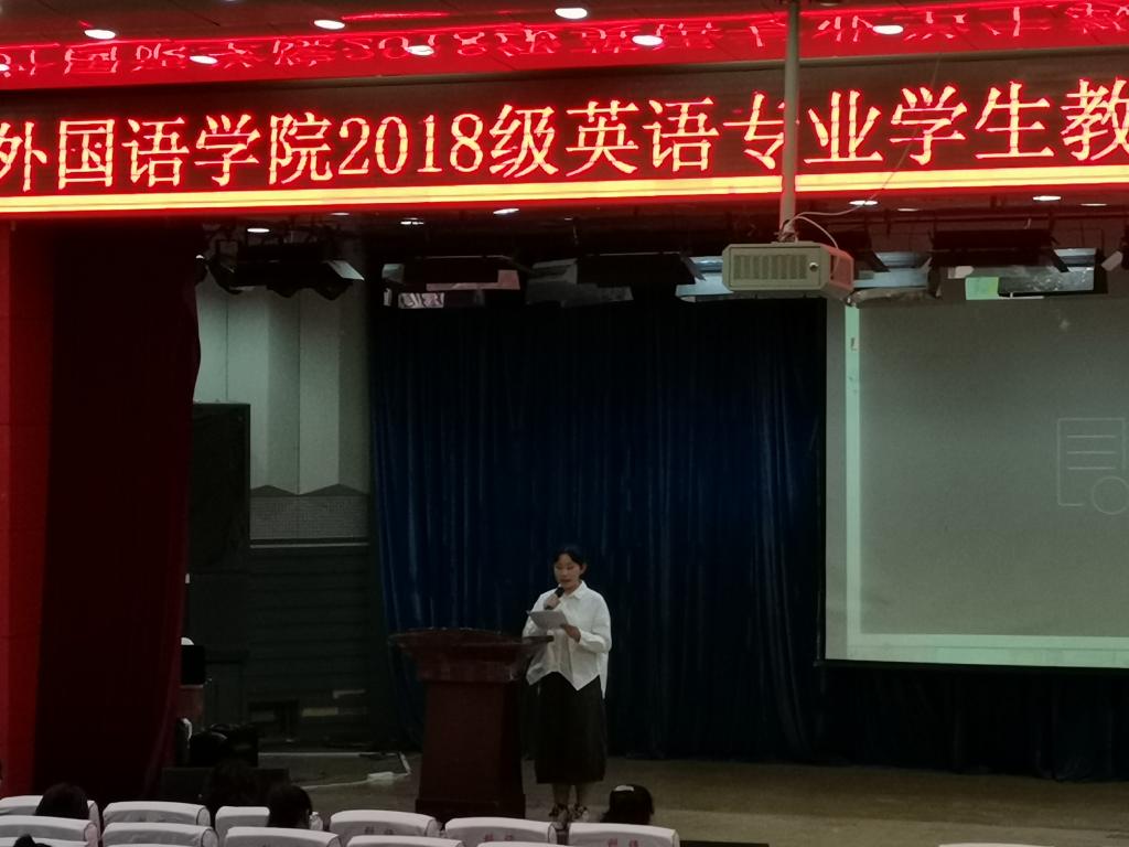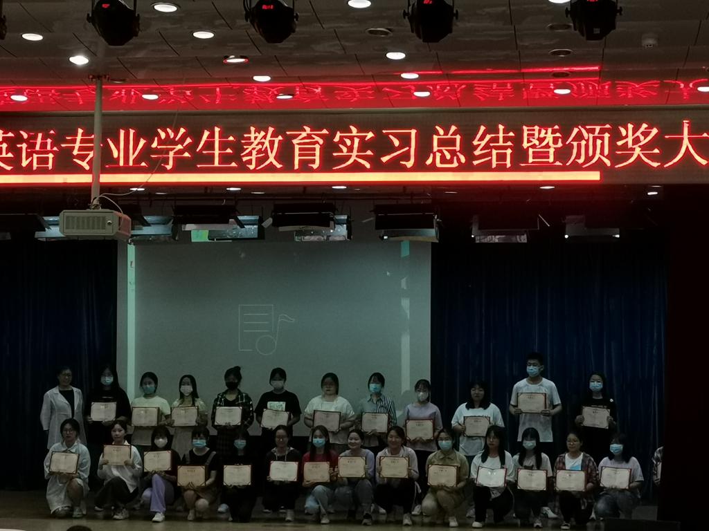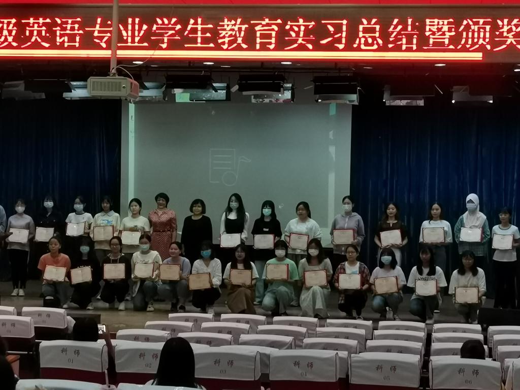 太阳成集团122ccvip英语2018级员工教育实习总结暨颁奖大会于2021年9月16日在太阳成集团122ccvip开发区校区报告厅顺利举行,参加大会的员工包括英语2018级全体员工共122人,2021级新生代表共40人,同时,太阳成集团122ccvip邵丽君书记、崔海英经理、罗学锋副经理和范学荣副经理,以及部分实习指导教师出席了大会。