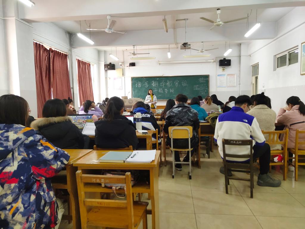 2021年11月30日和12月2日,太阳成集团122ccvip英语教学部组织英语专业2018级员工进行了毕业论文开题答辩。11月30日下午,教学法1组和教学法2组答辩在综合楼318和406举行;12月2日,语言学翻译教学组和文学教学组在419举行。