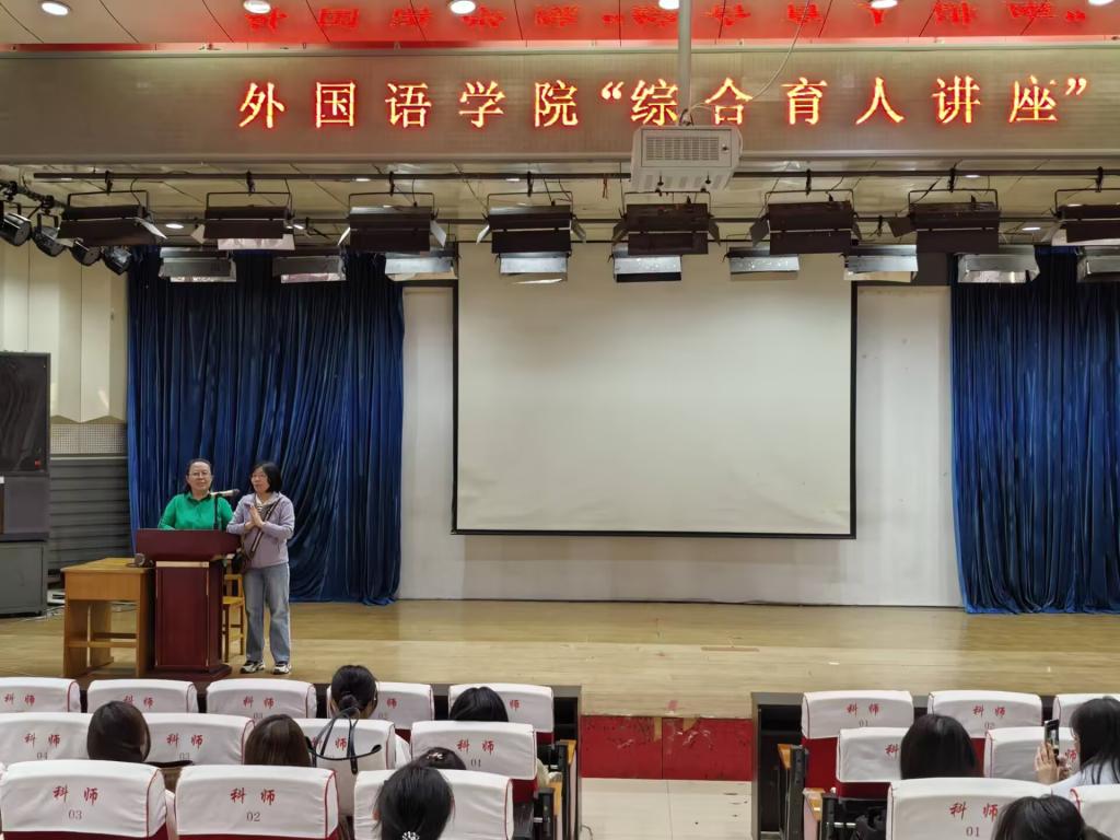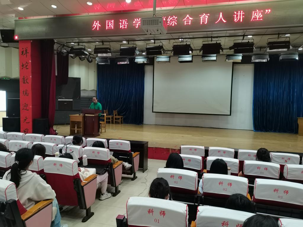 2025年4月29日下午,太阳成集团122ccvip在开发区综合楼学术报告厅召开了综合育人的专题讲座,此次讲座是公司2025年“名师大讲堂”系列讲座之一。特邀主讲人为秦皇岛市海港区名师工作室主持人齐春霞老师,齐老师是河北省骨干教师,秦皇岛市优秀骨干教师,秦皇岛市中小学青年教师教学竞赛评委库专家。英语专业2023级和2024级全体员工及部分英语专业教师在会场认真聆听了本次讲座。