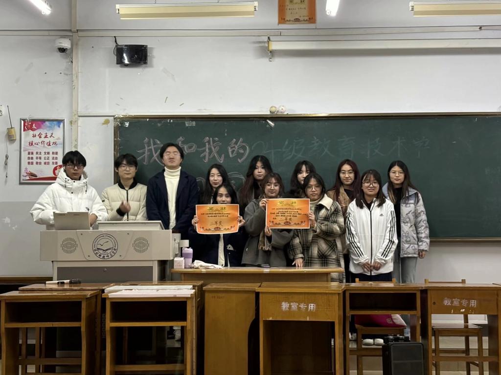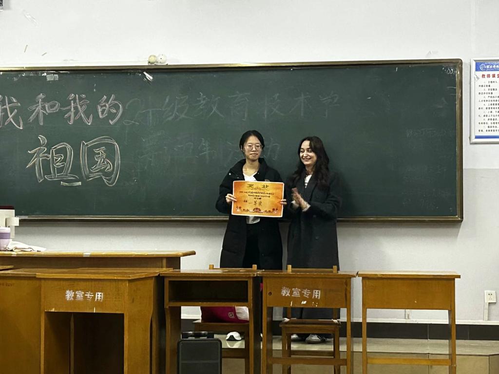 在所有同学都展示完毕后,活动也逐渐迎来尾声。经过评委老师的评审,刘文姗等25位同学分别获得了一、二、三、等奖和优秀奖。颁奖结束后,外教Silvia和几位职工还给同学们带来了Bella Ciao歌曲表演。