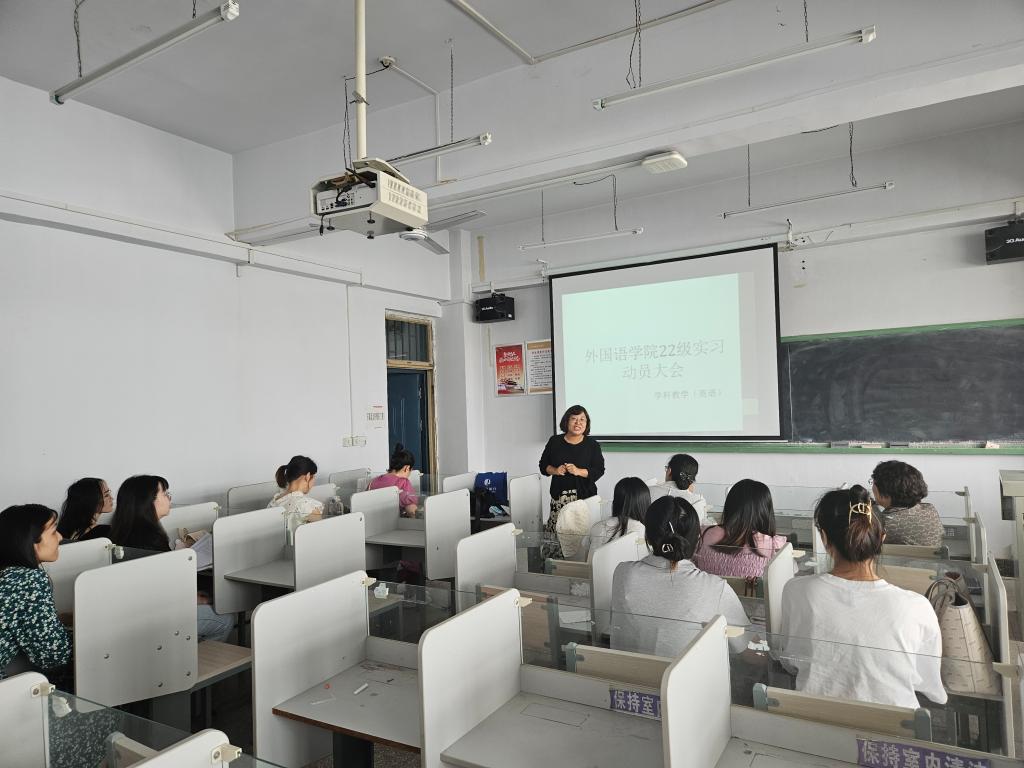 8月30日外语公司组织召开“2022级硕士研究生教育实习动员大会”,崔海英经理、邵丽君书记、范学荣副经理、刘晓冰主任、研究生秘书李洋老师及部分导师参会,2022级学科教学(英语)专业全体员工参会。