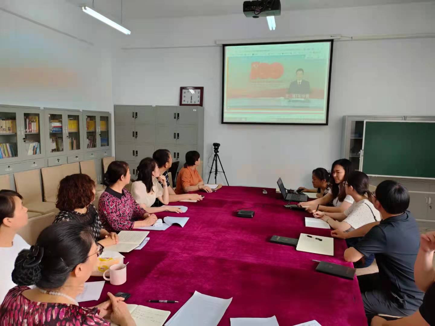 大家端坐在屏幕前准时开始收看,当习近平总书记用坚定激昂的语气说到“伟大光荣正确的中国共产党万岁!伟大光荣英雄的中国人民万岁!”时,与会的全体师生党员纷纷起立鼓掌,现场气氛十分热烈。邵书记表示,今天我们迎来了中国共产党的100周岁华诞,在这火红七月,美好的第一天里,我们一起为党祝福,祝福我们的党生日快乐!