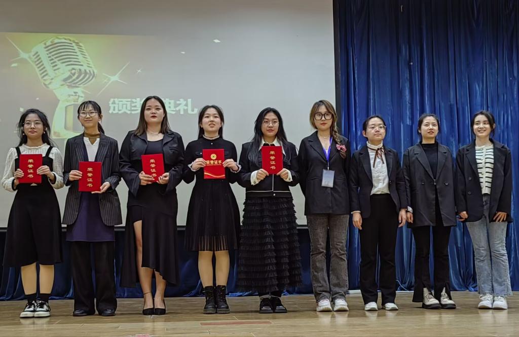 本次大赛共有6位选手参与,场下有60位观众观看。比赛现场精彩不断,选手们能歌善舞,妙语连珠,台上高潮迭起,台下掌声雷动。选手们各展风采,才艺展示时甜美动人的嗓音、情绪饱满的诵读、温暖人心的视频让我们看到了选手多样的才艺;新闻评析时把握重点、抒发己见,让我们看到了选手卓越的才能;话题辩论时发散思维、旁征博引,让我们看到了选手不凡的实力。每位选手的精彩表现都给我们留下了深刻印象。经过激烈的比拼,张舒铭获得一等奖,张司诺获得二等奖,那峻瑶获得三等奖,刘婷婷等三人获得优秀奖。张舒铭、张司诺晋级校赛。