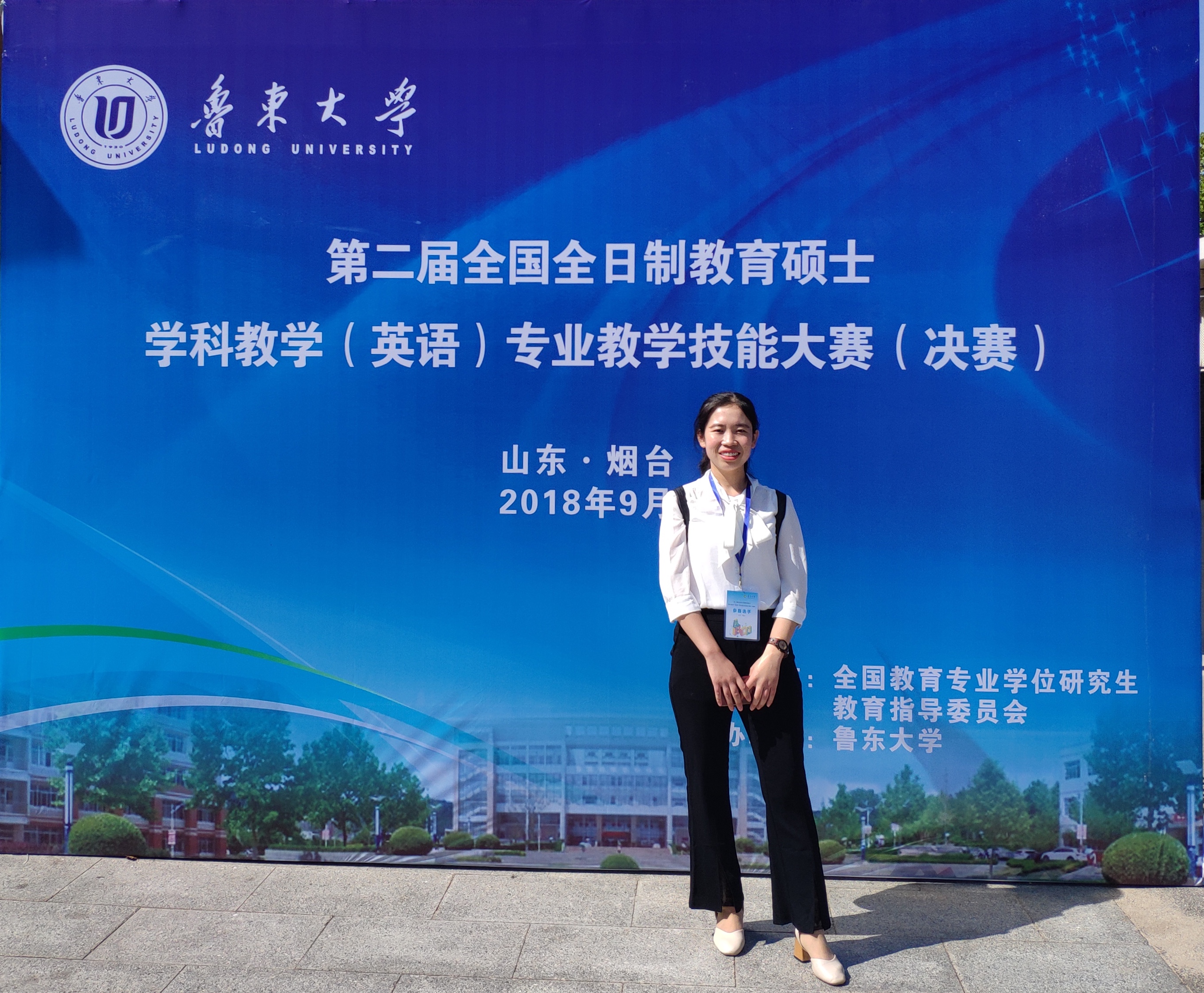 2018年9月21日至23日,第二届全国全日制教育硕士学科教学(英语)专业教学技能大赛(决赛)在鲁东大学拉开帷幕。公司2017级学科教学(英语)专业研究生赵蔚蔚参加决赛,在模拟讲课和现场答辩两大环节中展示出了公司研究生良好的学科素质和精神风貌,并获得优秀教学设计奖。