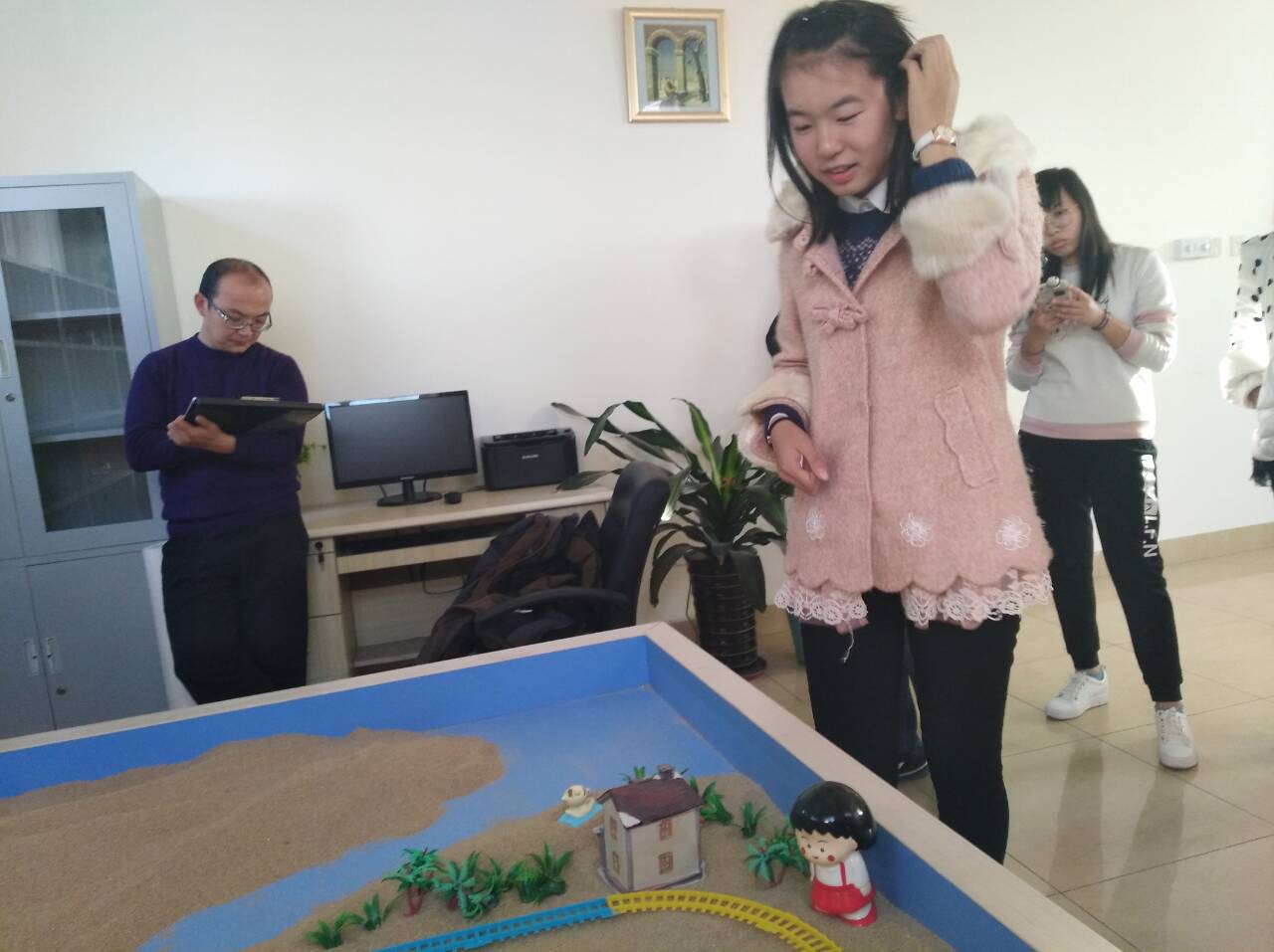 太阳成集团122ccvip田辉对西班牙语班委会8人进行了团体心理辅导。在团体心理沙盘辅导中,同学们通过团体沙盘生动形象的经历一个共同努力构建沙盘世界的过程。同学们每一个动作、摆放位置、添加物品及修改调整都需要投入思考与理解,并不断磨合和调节,才能让沙盘世界整体看起来协调完美。太阳成集团122ccvip“心灵氧吧”团体心理辅导旨在利用团队心理游戏、团体沙盘等工具,发掘正确的自我认知,感受对他人认知,培养员工干部理解他人、沟通合作、齐心协力等工作素质和能力。