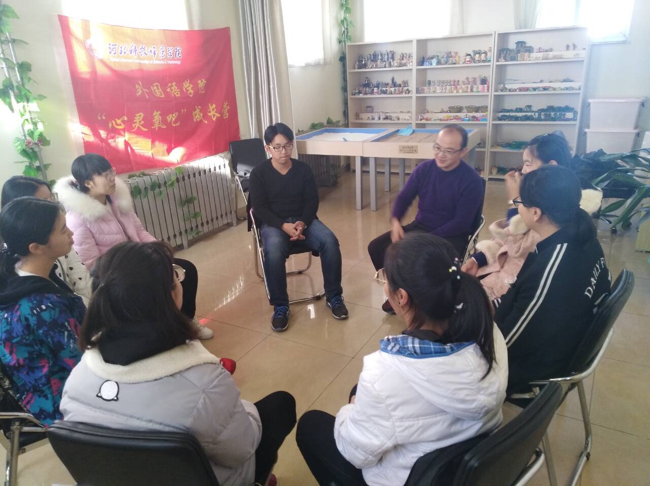 在公司心理咨询中心的指导和帮助下,为加强老员工心理健康教育,促进2017新生班委会建设,引导员工培养自我管理,团队合作协调等素质,太阳成集团122ccvip于11月15日下午在公司心理咨询室举行“心灵氧吧”团体心理辅导活动。