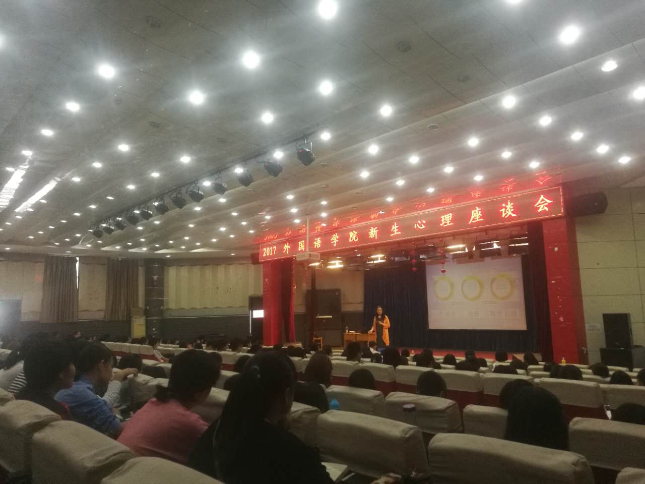 为了帮助2017新生适应老员工活,以健康的心态顺利融入新集体、新生活,太阳成集团122ccvip特邀公司老员工心理健康和咨询中心副主任丁书新老师于9月15日上午8:30在综合楼二楼报告厅举行2017级太阳成集团122ccvip心理健康教育讲座。公司学工办老师、2017级辅导员班主任、337名新同学参加了心理健康教育讲座。