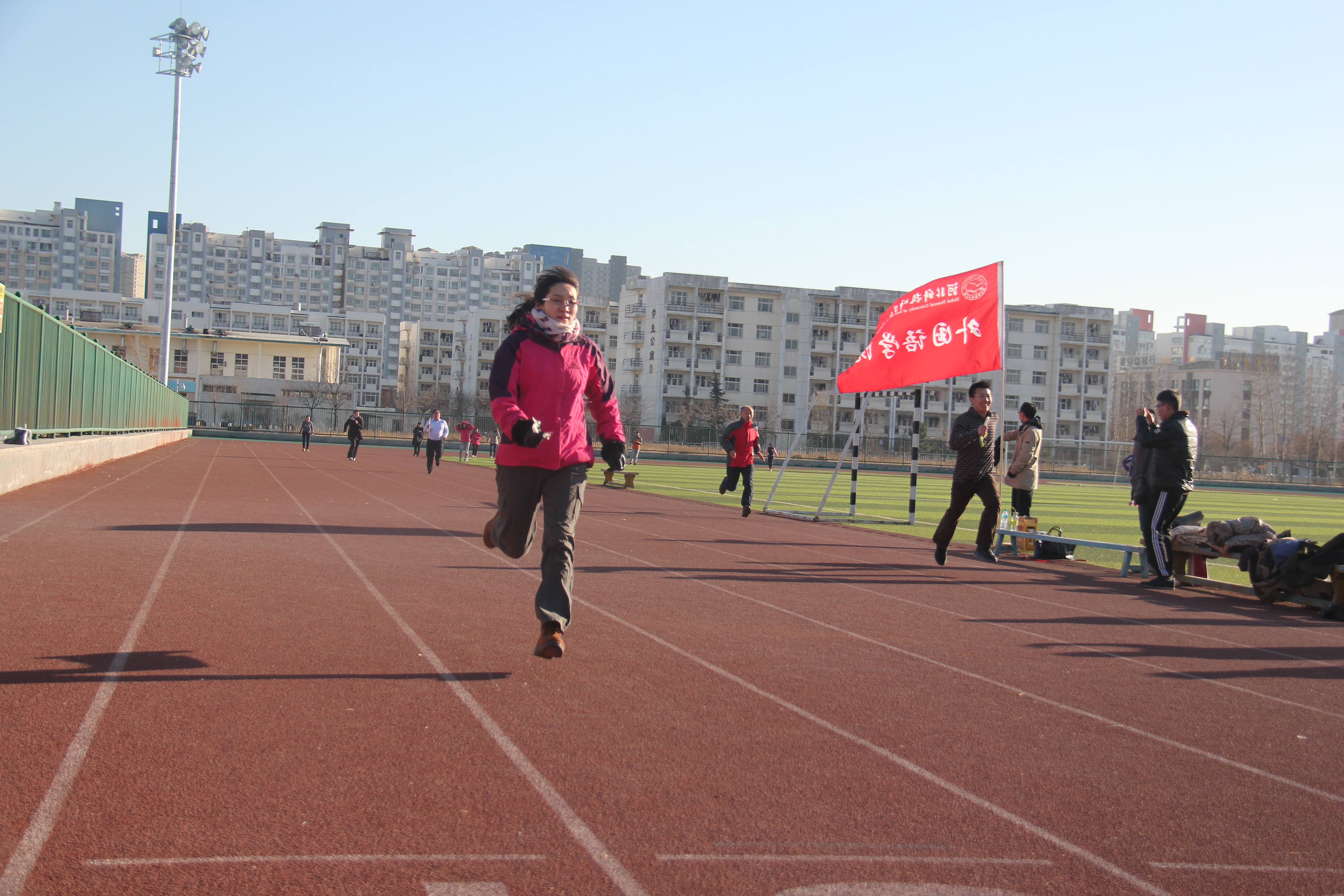 伴着冬日暖阳和如洗碧空,太阳成集团122ccvip教职工四人一队,分为若干小组在跑道上展开接力长跑。此次活动,旨在以接力长跑的形式来纪念12.9运动,缅怀先烈,并希望教职工们能够锻炼出强健的体魄,将爱国精神,民族正气传递下去。