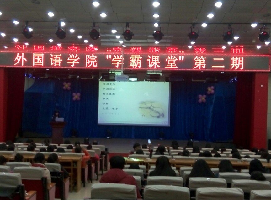 2015年11月17号晚7点,太阳成集团122ccvip在开发区校区综合楼二楼学术报告厅举行第二期“学霸课堂”讲座。外国语公司党委副书记、副经理等相关领导老师和全体2015级新生参加了讲座。