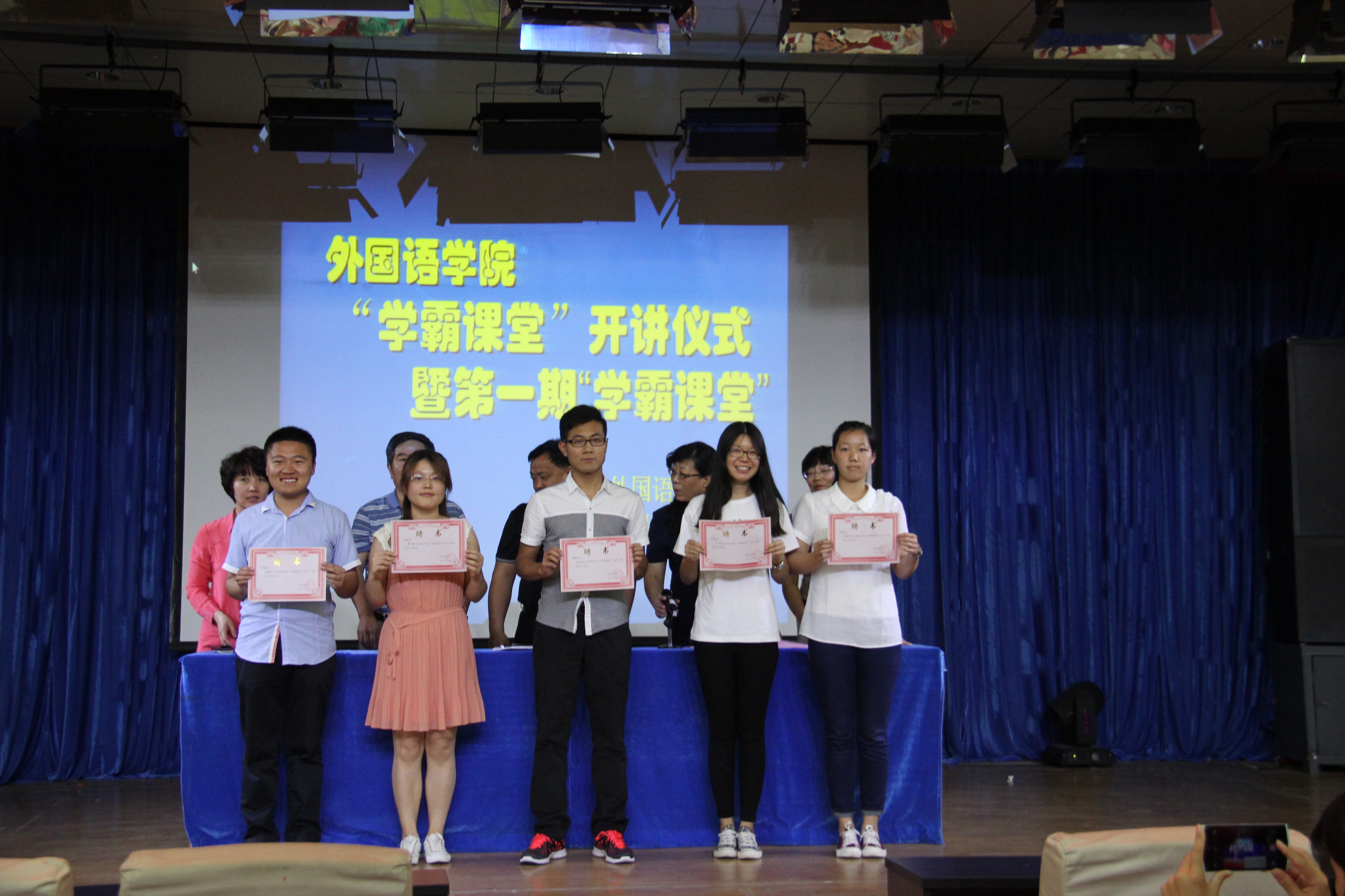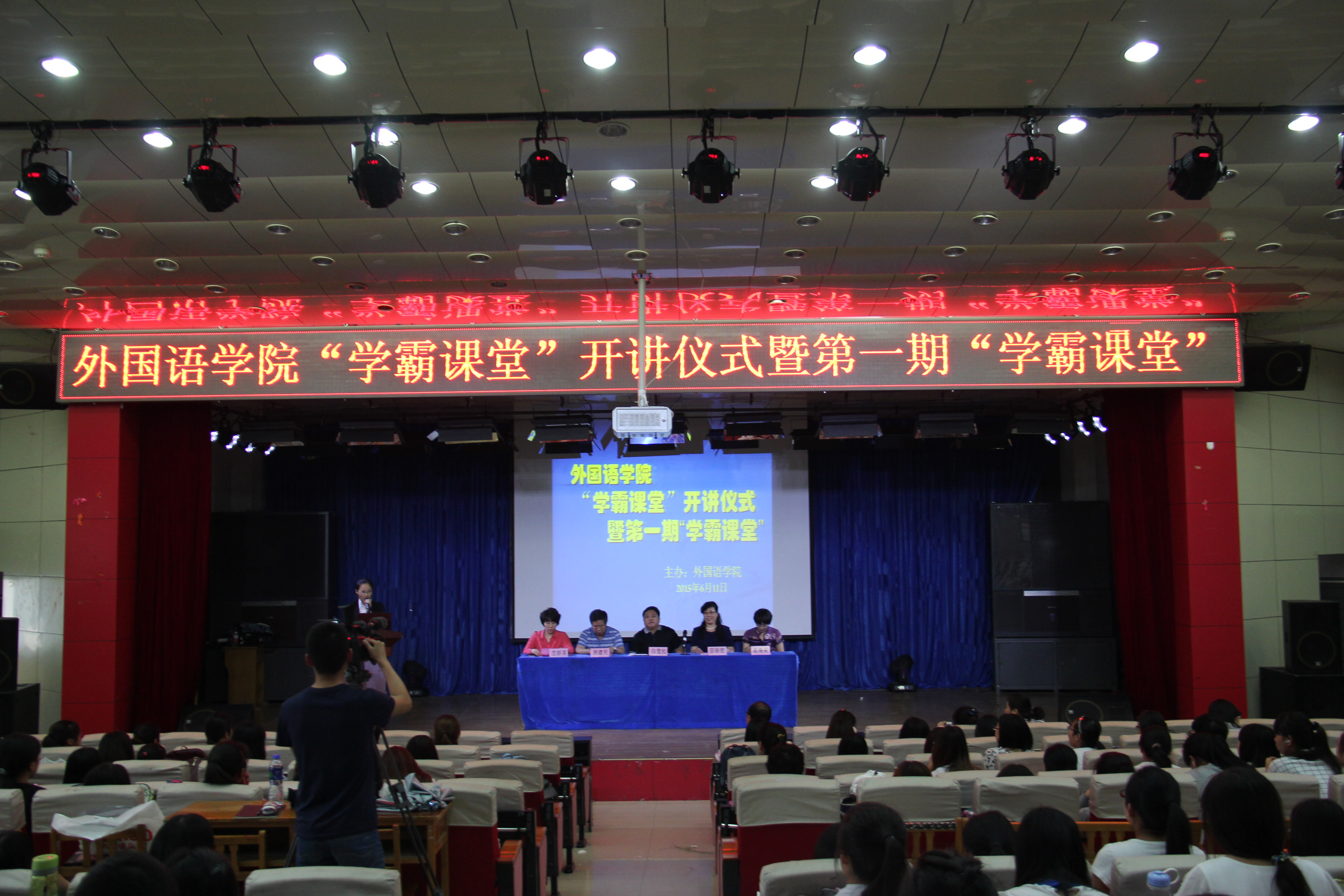 2015年6月11日下午2:30,太阳成集团122ccvip在开发区校区学术报告厅举办了 “学霸课堂”开讲仪式暨第一期学霸课堂活动。外国语公司党委书记白雪松,经理邵丽君,副书记副经理范群英,副经理游建民,副经理崔海英出席了此次活动。公司200多名员工参加了“学霸课堂”活动。