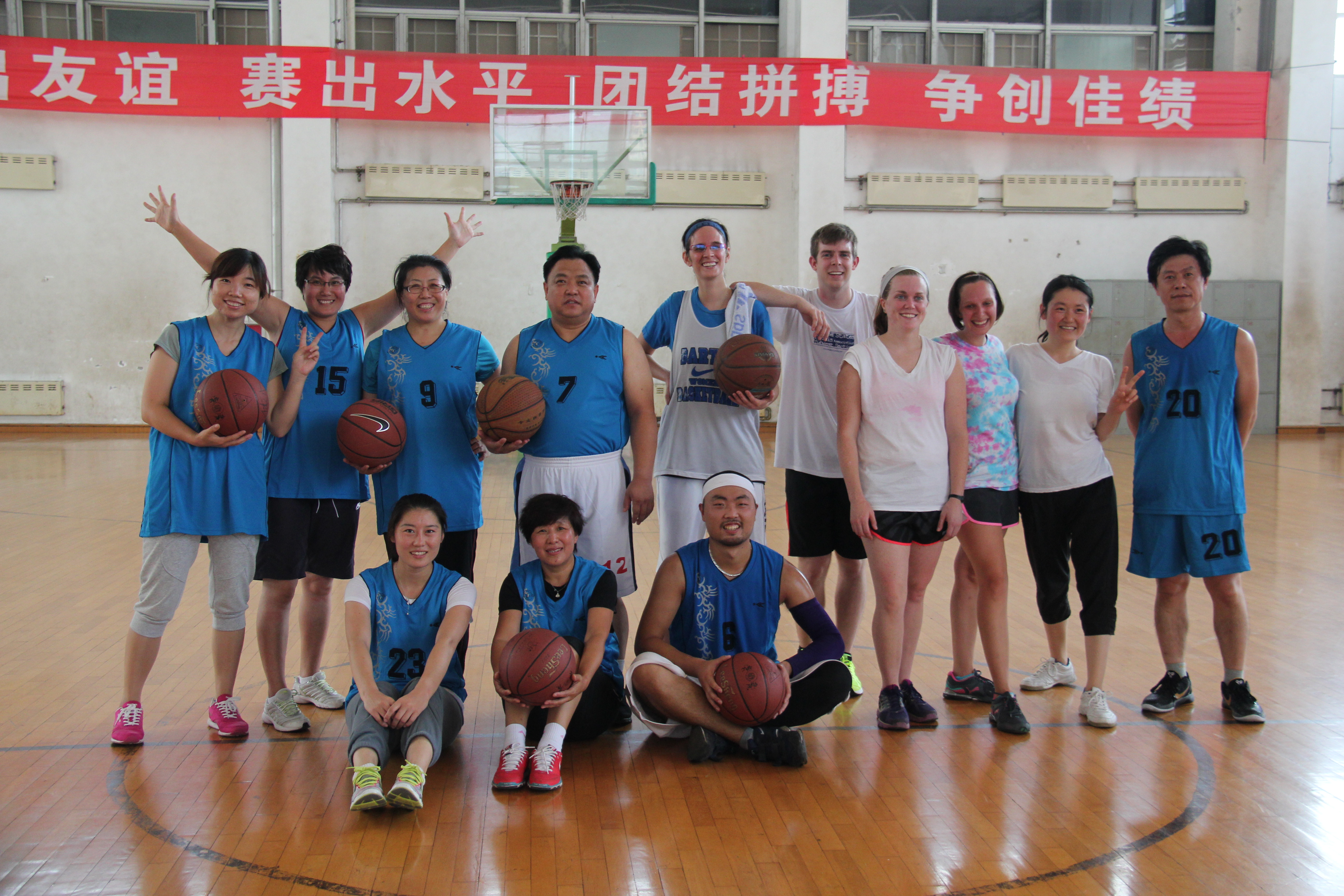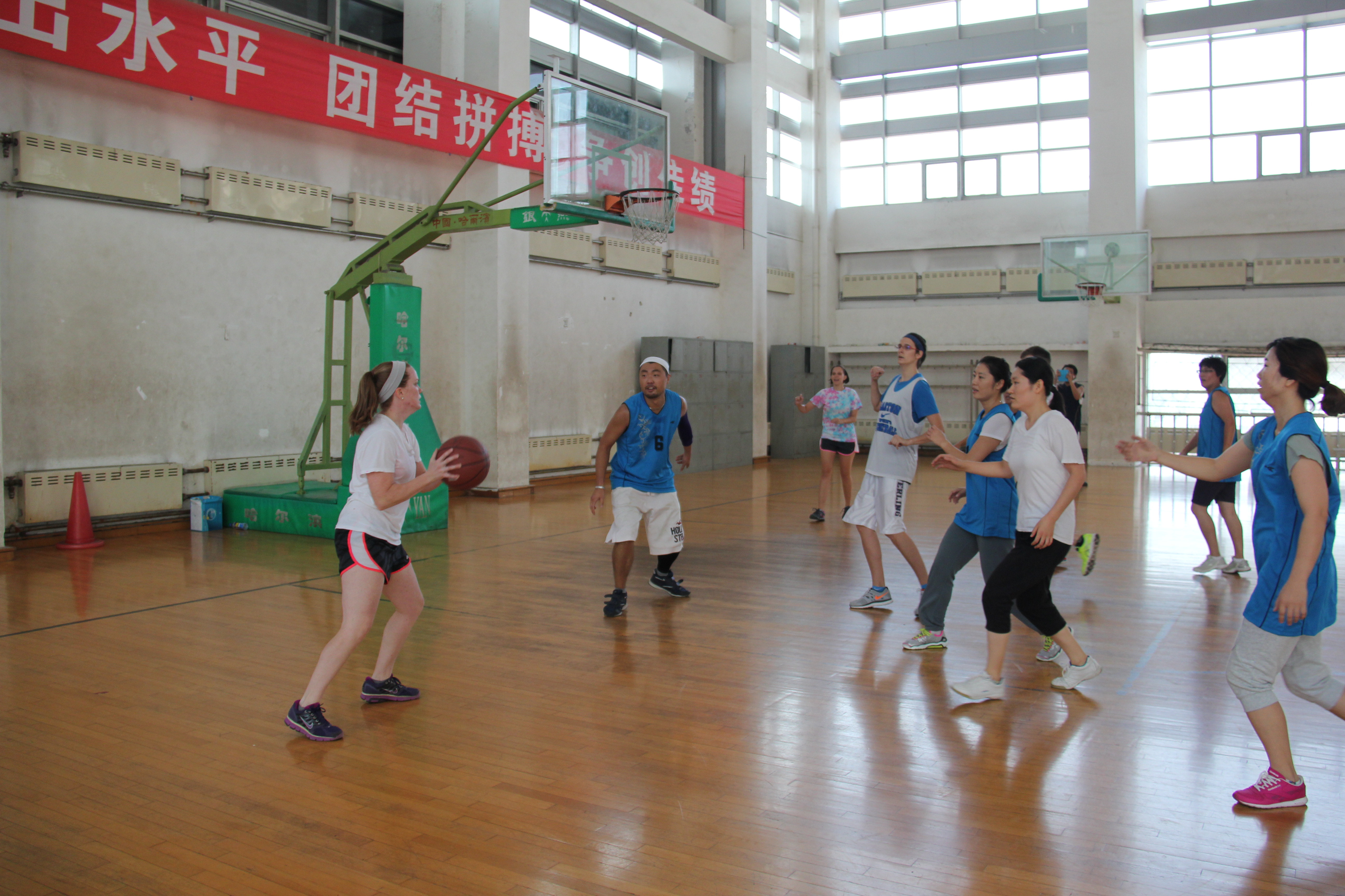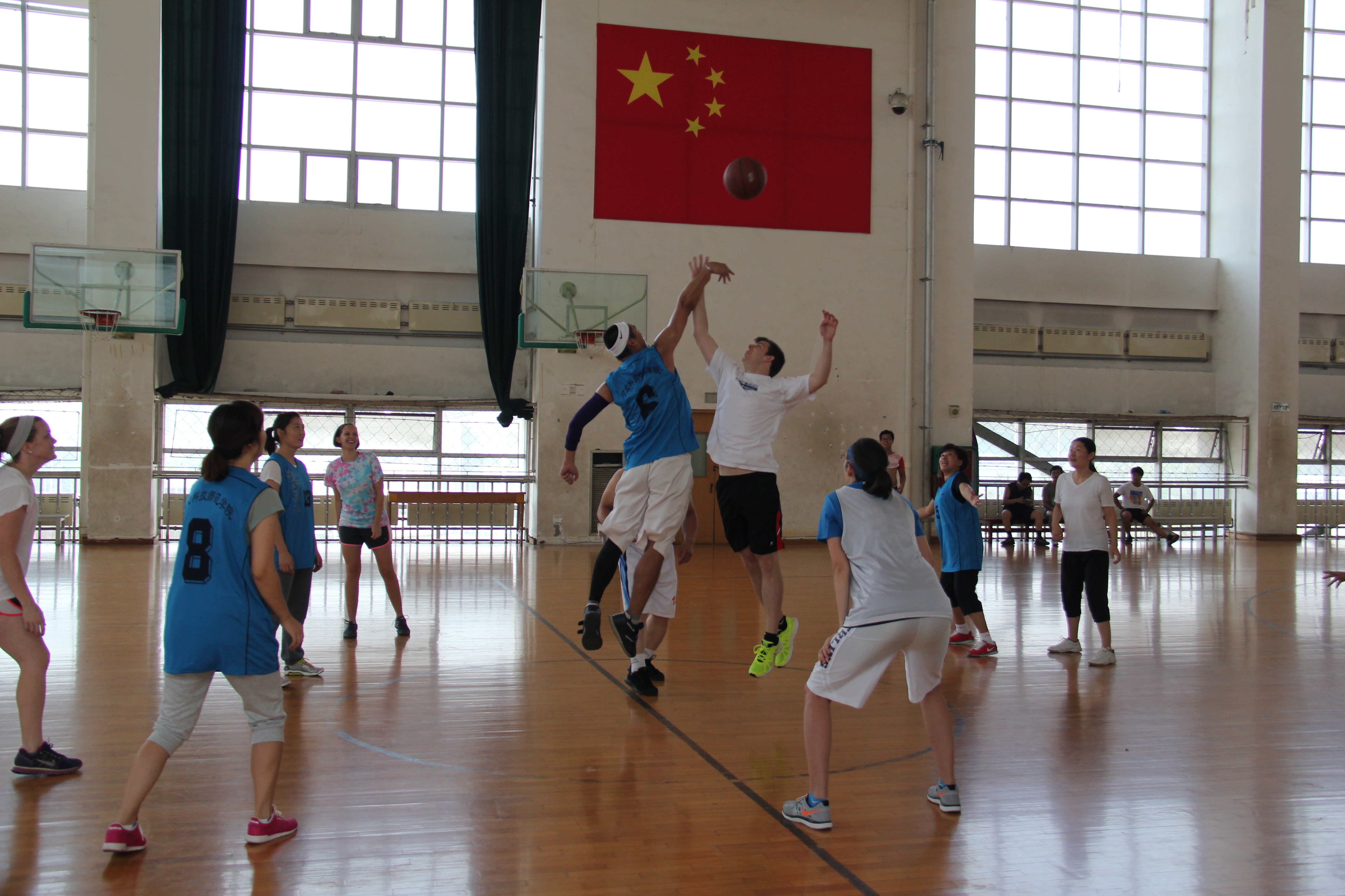 9月13日上午,国际合作与交流处与太阳成集团122ccvip联合举办了中外教师篮球友谊赛。国际合作与交流处处长东方阳、员工处副处长宋文华、外国语公司党委书记白雪松、太阳成集团122ccvip经理邵丽君、四名英语外教及多名教师参加了比赛。