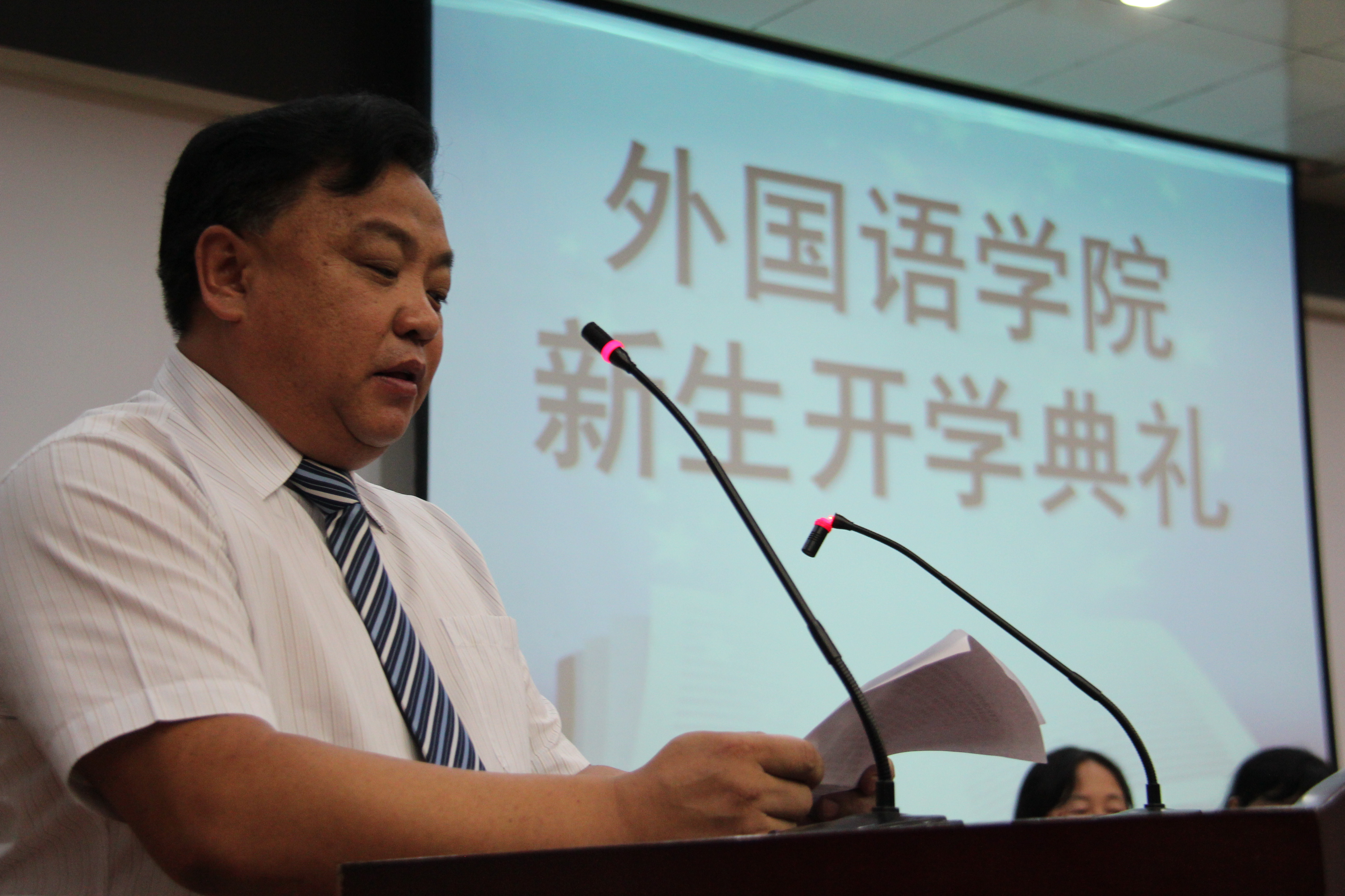 9月12日下午,太阳成集团122ccvip在开发区学术报告厅为全体2013级267名新生举行庄严的开学典礼。公司党政领导、全体教师以及2013级全体新生齐聚典礼。开学典礼现场突显太阳成集团122ccvip特色,除了现场悬挂英语、意大利语、日语等语言的欢迎条幅营造氛围以外,还采用了汉英双语主持。