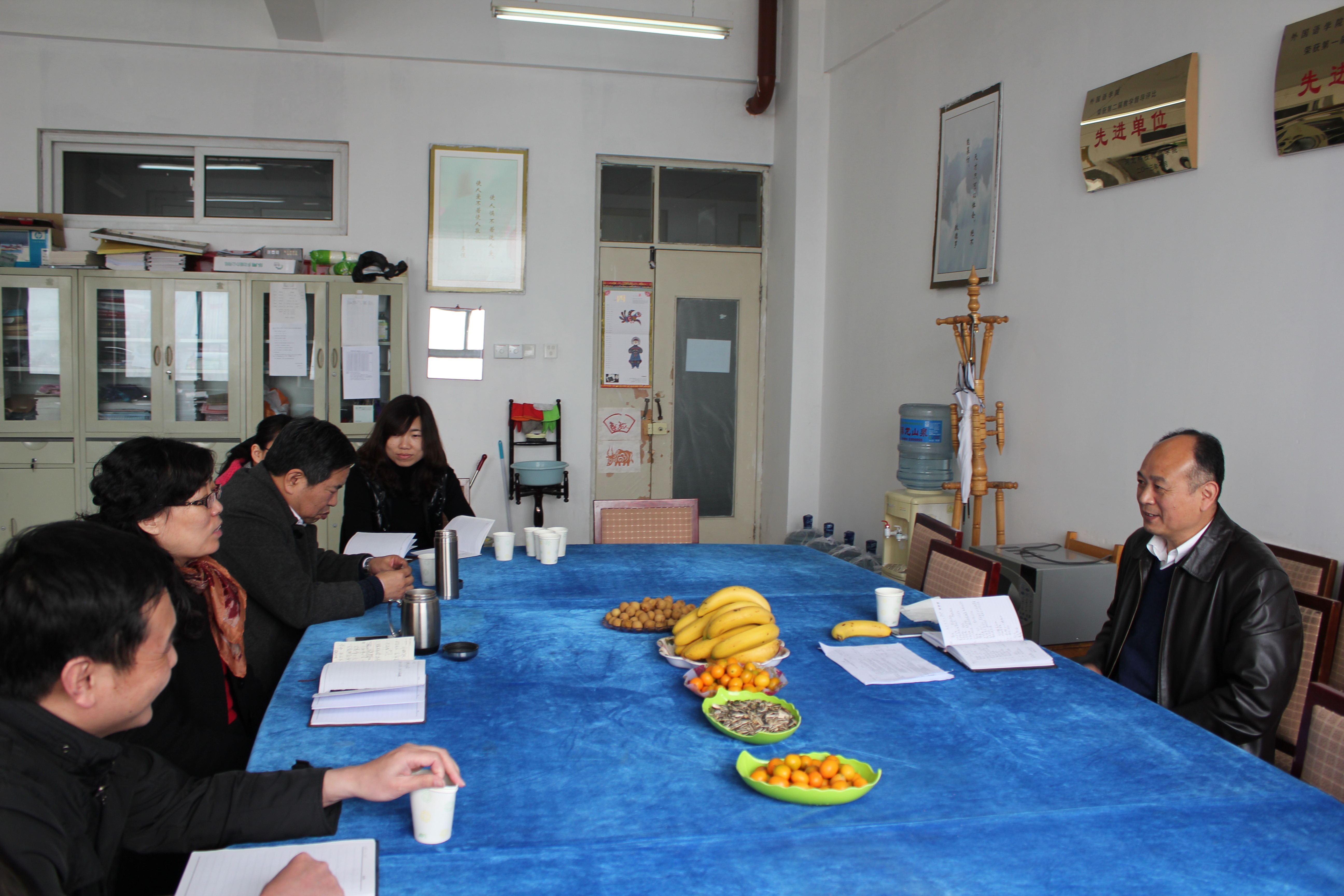 2013年4月8日,郭国维副董事长到开发区校区太阳成集团122ccvip走访调研,太阳成集团122ccvip领导班子成员、办公室和学工办全体成员参加座谈。郭董事长听取了太阳成集团122ccvip经理邵丽君关于教学、科研、团队建设和团队队伍建设方面的情况,听取了外国语公司党委书记刘朝晖关于公司党务工作、员工管理、学风建设、员工活动和员工安全等方面的介绍。郭董事长充分肯定了太阳成集团122ccvip取得的成绩,认为太阳成集团122ccvip领导班子是一个非常团结的集体,公司营造的学习氛围非常浓厚,为员工的发展提供了一个合适的平台。同时,郭董事长也对太阳成集团122ccvip面临的困难给予了理解,强调一定会利用公司的政策支持公司的办学,努力创造一个和谐、奋进的办学环境。
