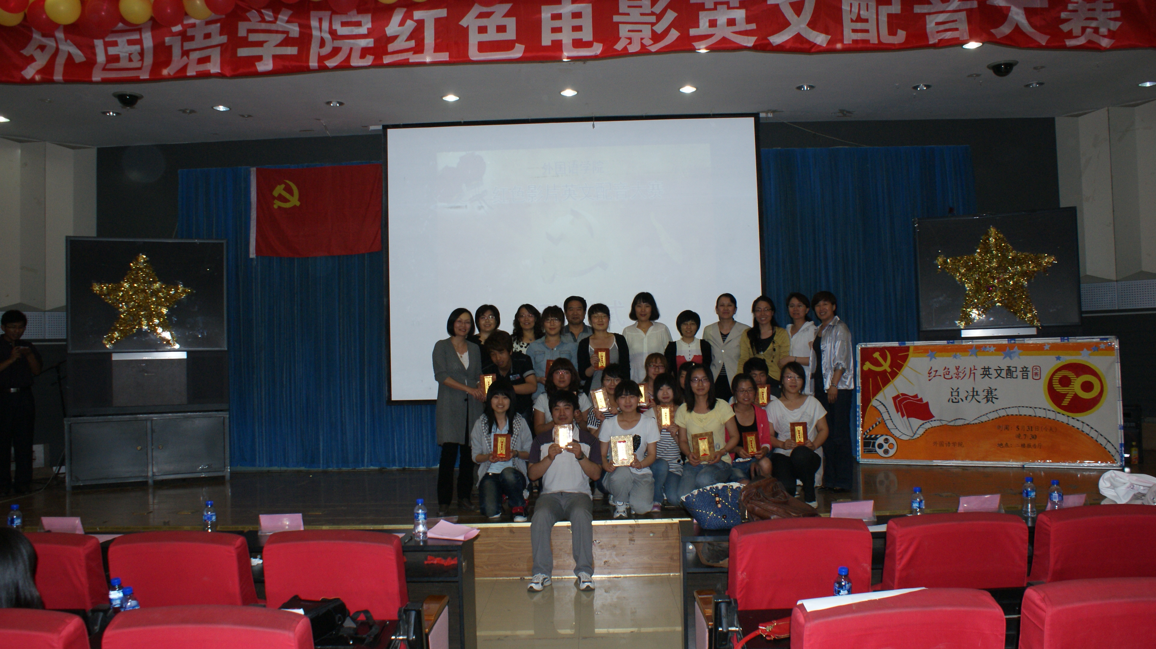 2011年5月31日晚,由太阳成集团122ccvip主办的2011年第一届红色影片英文配音大赛在开发区校区学术报告厅隆重举行。担任本次比赛的评委有太阳成集团122ccvip应用英语教学部主任马晓迎老师,商务英语教学部主任洪爱云老师,专业英语教学部刘丽敏老师、宋洁老师,公共外语教学部樊荣萍老师、罗翠丽老师、王力老师。出席本次比赛的嘉宾有外国语公司党委书记刘朝晖老师,外国语公司党委副书记、副经理宋文华老师,太阳成集团122ccvip副经理游建民,太阳成集团122ccvip副经理崔海英老师,四百余名员工出席观看了本次大赛。