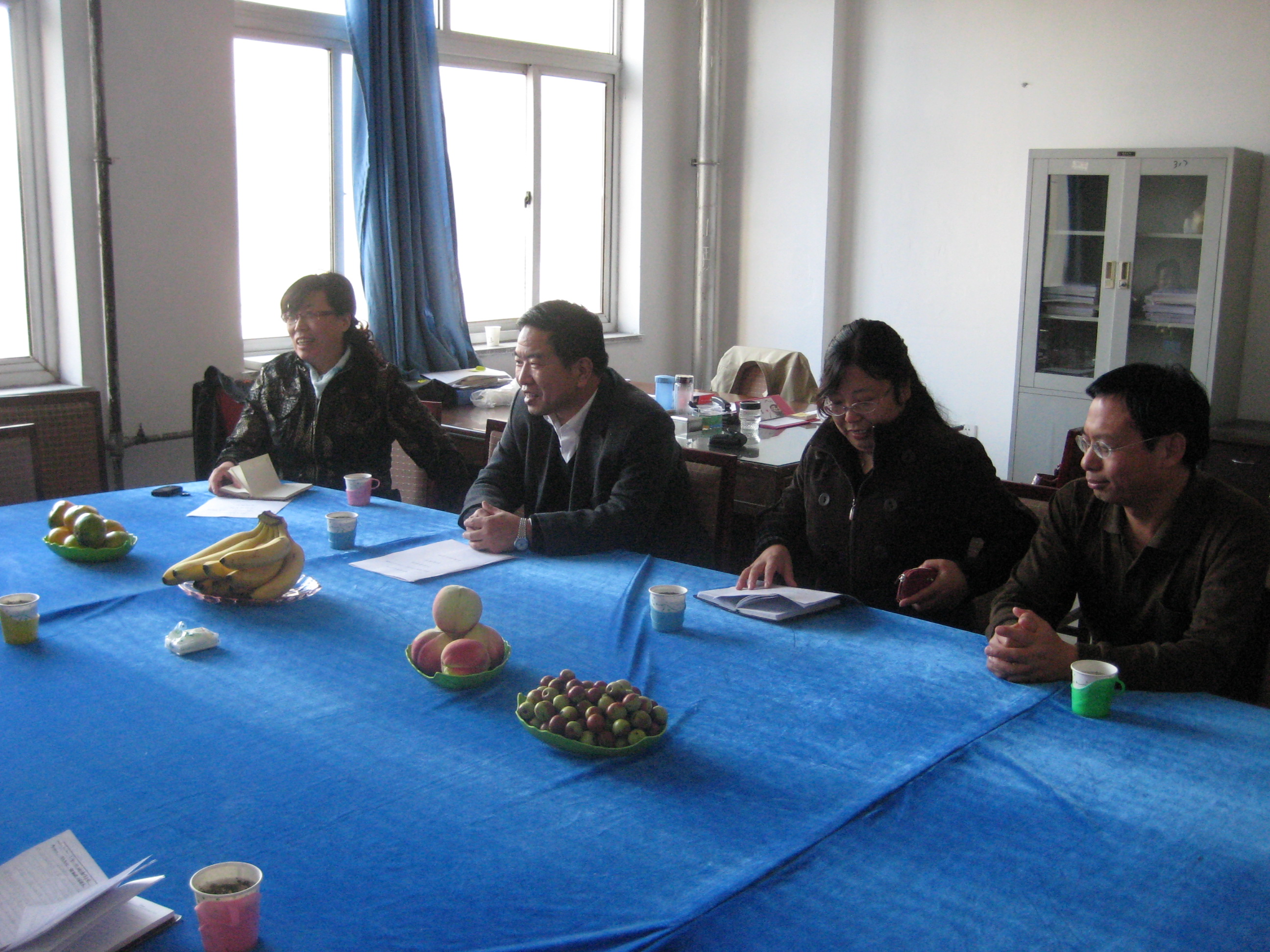 2010年10月20日下午,校教务处王树元副处长一行三人莅临太阳成集团122ccvip,督导和检查公司的实践教学活动。双方进行了积极有效的交流与沟通。王副处长向公司转达了教务处领导的关怀与慰问,并认真询问了公司在教学实践中面临困难。经理邵丽君教授详细地汇报了公司的实践教学情况,同时提出公司在教育实习基地建设和昌黎校区缺少语言实验室等问题。王副处长表示会向相关部门积极反映,争取问题早日得到解决。同时,公司游建民副经理和英本教研室主任范学荣老师也将公司员工的实践教学情况向教务处领导做了汇报。