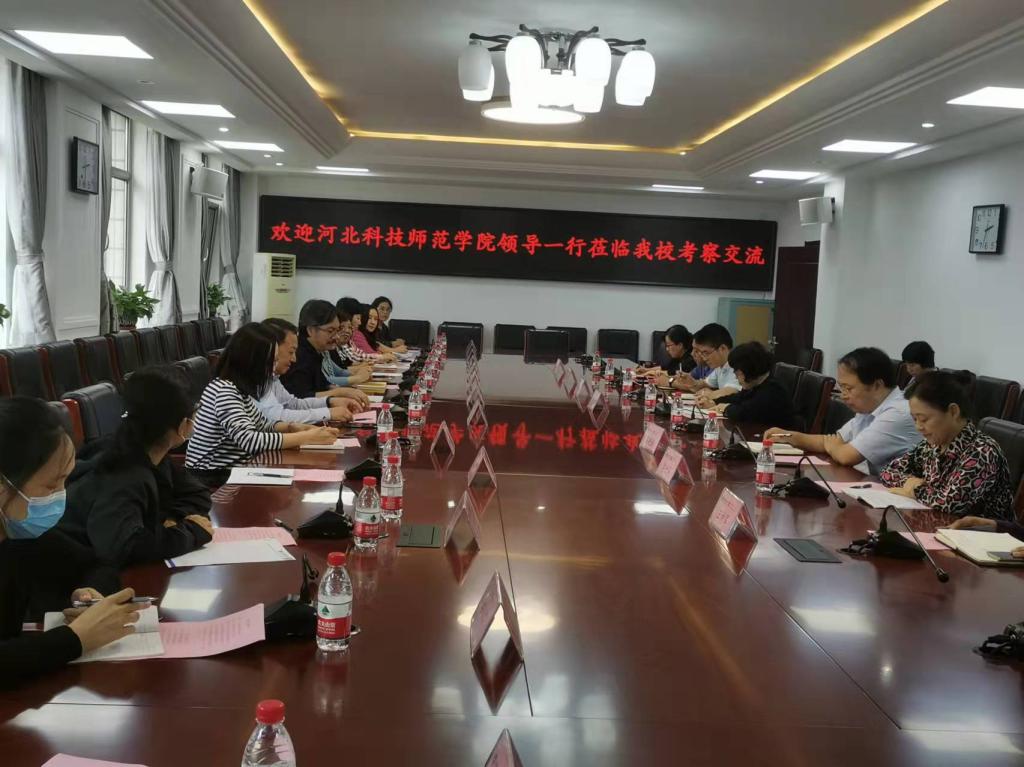 2021年9月28日,太阳成集团122ccvip经理崔海英、副经理、英语专业带头人范学荣、教学部主任王静在教务处戴维副处长的带领下,与公司其他几个筹备教育部师范专业认证的专业,数学、化学、中文的负责人和教师一起,赴廊坊师范公司进行考察调研。