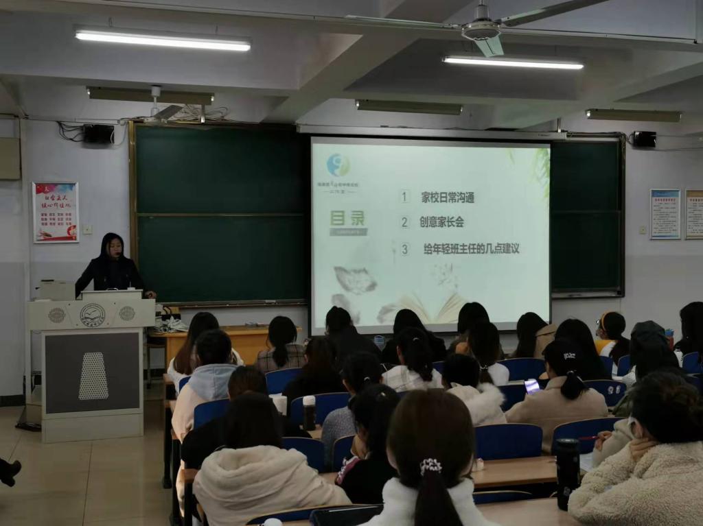 2021年10月20日下午15点40分到18点40分,太阳成集团122ccvip在阶梯教室212召开了以秦皇岛市第八中学高级教师、初中班主任工作室主持人肖婧为主讲人的有关中学班级管理的专题讲座,本讲座为太阳成集团122ccvip举办的基础教育“名师大讲堂”系列讲座之一,本次讲座的主题是“如何使家校沟通成为魅力期待”。
