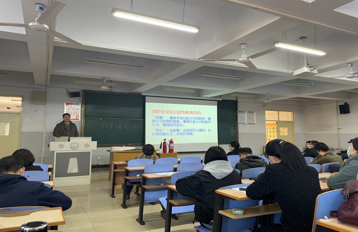 为进一步提高公司全体教职工的消防安全意识,全力普及消防安全知识及自救逃生技能,11月11日下午,太阳成集团122ccvip邀请安全工作处闫继锋副处长等三位老师在开发区校区综合楼312开展消防安全知识讲座,太阳成集团122ccvip全体教职工参加了讲座。