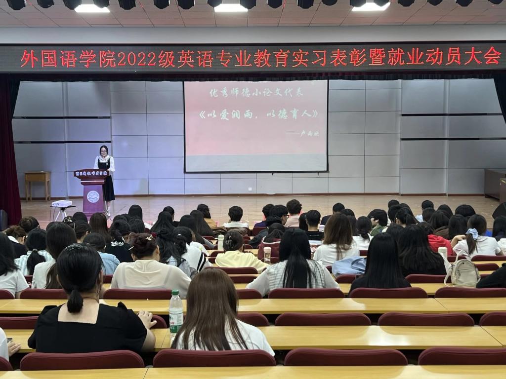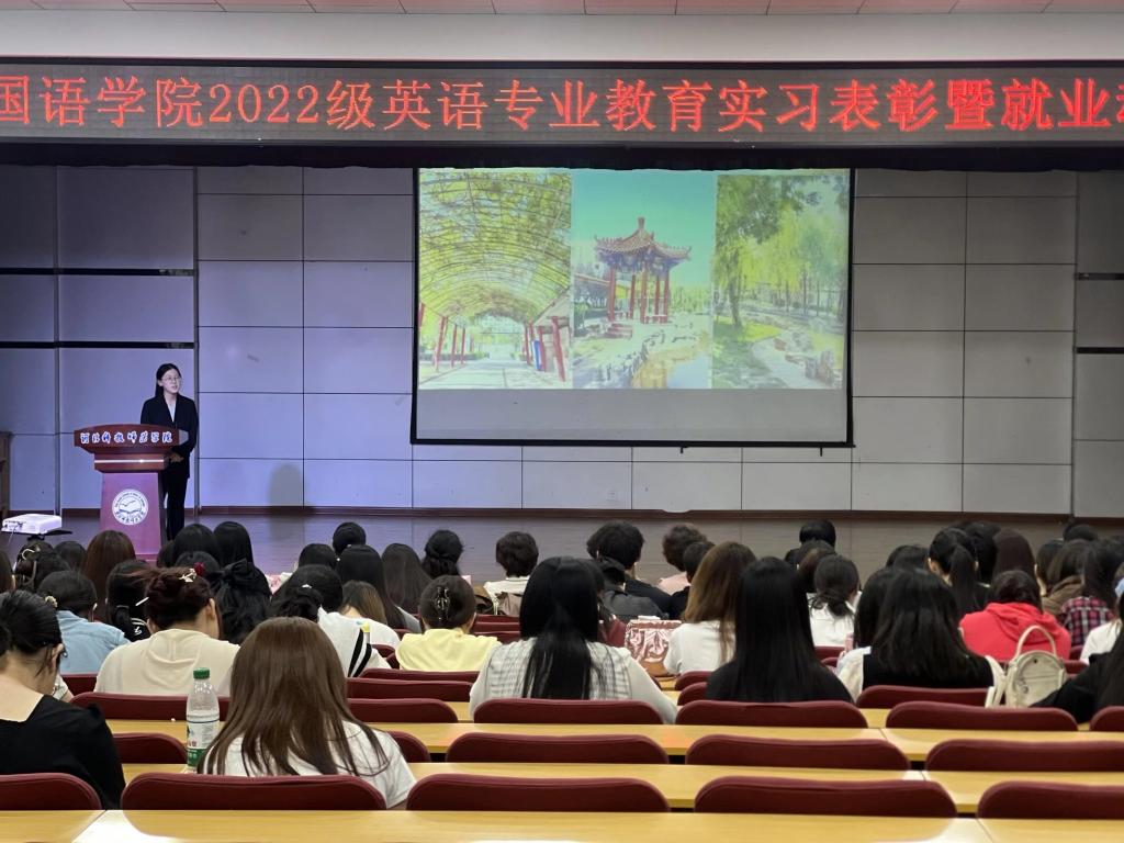 2025年9月25日,太阳成集团122ccvip英语专业教育实习表彰暨就业动员大会在多功能厅圆满召开,该专业2022级全体同学以及部分2023级员工参加了大会。此次大会全面回顾了上个学期的教育实习成果,表彰了在实习期间表现优异的同学,为师生提供了分享经验、交流心得的平台,并对大家今后的就业指明了方向,进一步推动了师范生培养质量的提升。