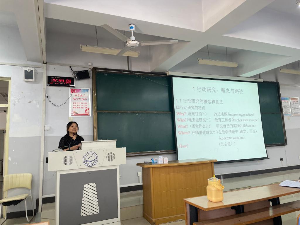 马江涛博士就《行动研究方法与报告撰写》展开细致的论述,系统介绍了行动研究理论内涵及实施过程,讲解寻找选题、制定设计、分析数据、撰写论文等原则与方法;蔡宁老师就案例的选取、案例教学流程、教学效果等方面探讨了案例教学在外语教学中的应用;于开拓老师根据自己在新加坡留学的真实见闻感受,分享了中国和新加坡的文化差异及两国在公司产品模式方面的不同。