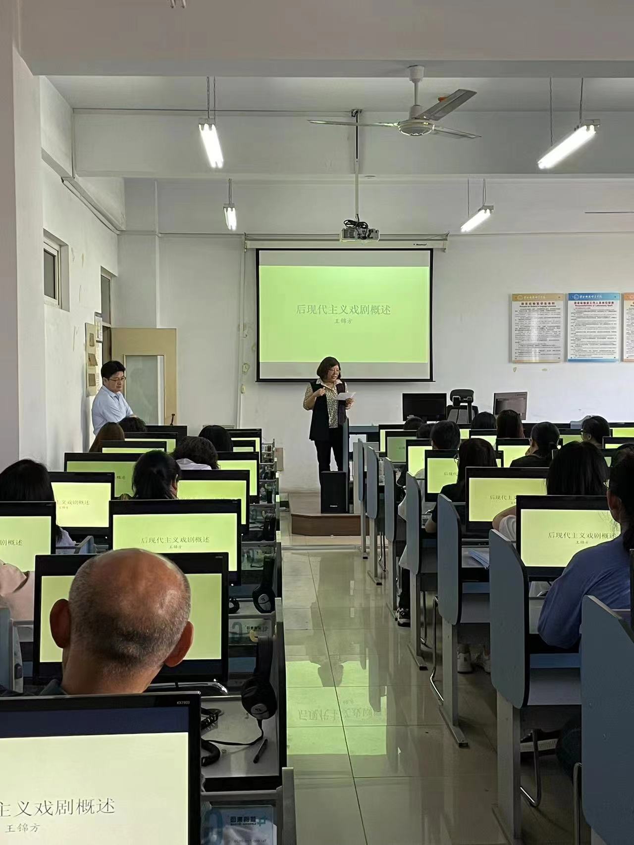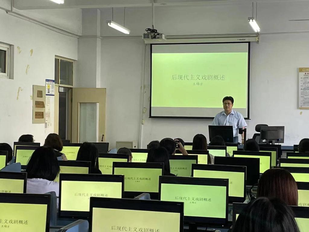 2024年5月30日太阳成集团122ccvip邀请王锦方博士主讲题目为《后现代主义戏剧概述》的学术报告。外语公司英本教学部教师、学科教学(英语)教学部教师及硕士研究生、对英美文学感兴趣的教师参加了此次报告。